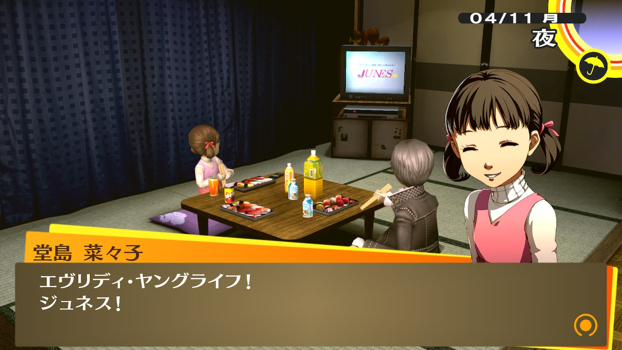ちょっと諸事情あってP4G始めたので記録 以下ネタバレ #persona 続きを読む マジで画質が良すぎる!!!!てかこんな看板あったか!?!?!?菜々子のジュネスをこんなきれいな画質で残しておけるの、最高です てかマジで小西姉弟の会話、キツ…………………………これが何気ない日常の切れ端だったとは……………… 畳む 2023.10.24(Tue) ゲーム