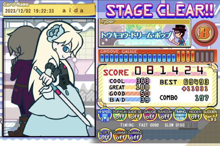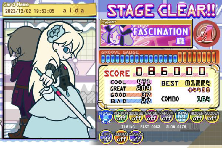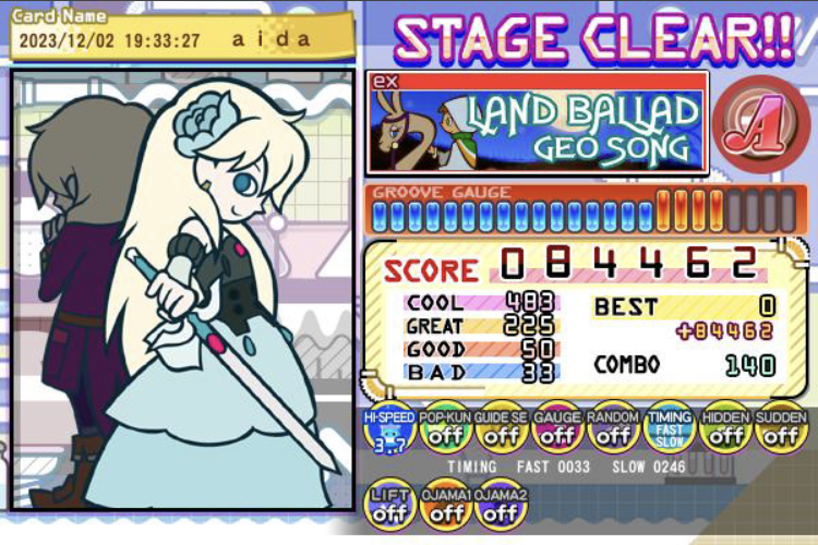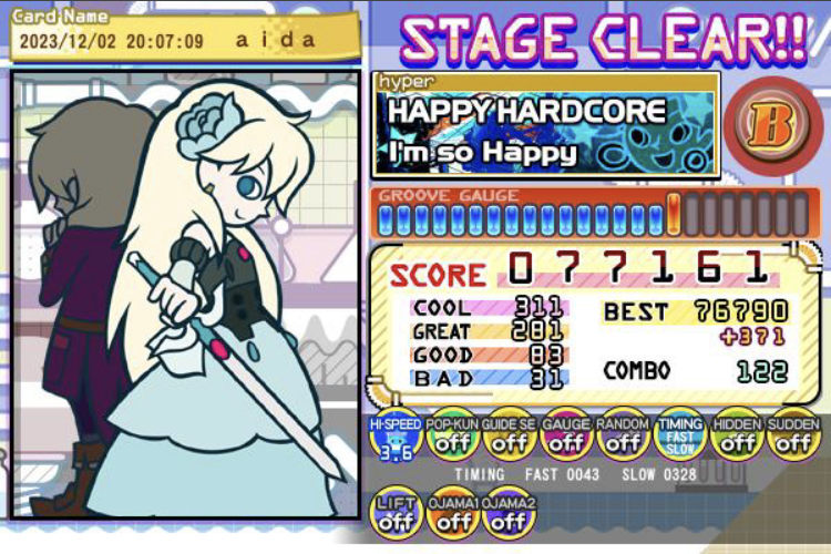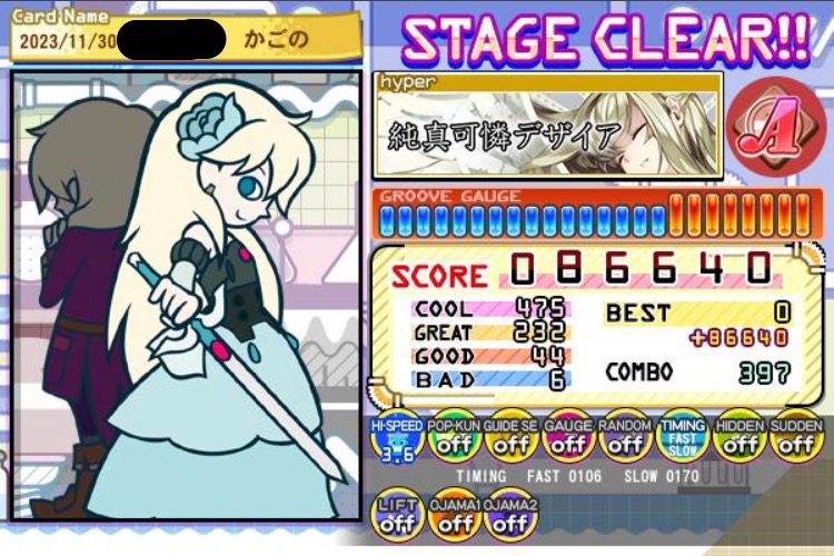 今日はマジで偉業が多すぎるのでここで公開……これらは初クリアですおめでとう!!!!38、39クリアがちょっとずつ増えてる!!!!コアグルーヴガチでガチでガチでクリアできてよかった涙涙涙涙涙 ファッシネイションのクリアもマジで嬉しい、好きな曲で何度も挑戦したから………………ポチコもクリアできなかったから嬉し〜〜〜!!あとはもう愛無双ギリギリクリアだけどおめでとう………………!!!!もうちょっと余裕のあるクリアを目指す………… 10年くらいかけてようやくここまできた!!!!うお〜〜〜〜ほんとにちょっとずつ多分うまくなってるはず…………!!!!やるぞやるぞやるぞーー!!! #bemani 続きを読む 畳む 2023.12.2(Sat) ゲーム