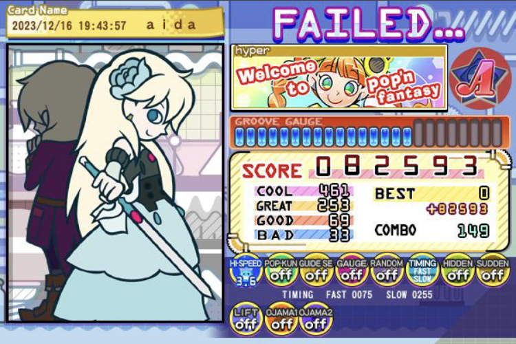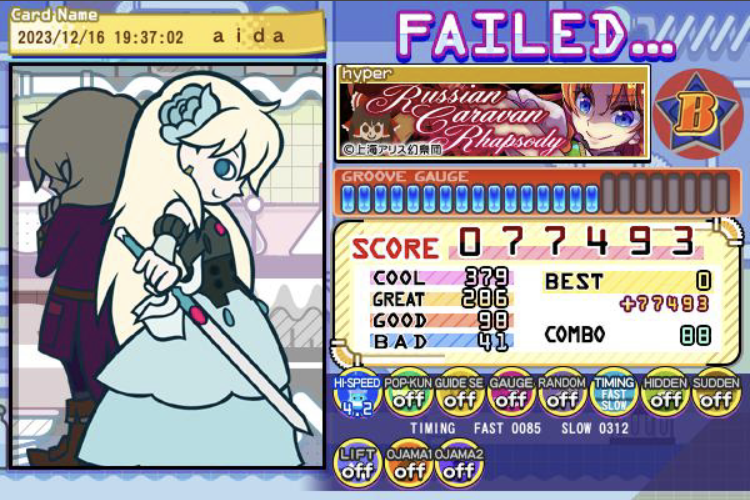 ゲーセン毎日行ってる(帰りに絶対寄ってる為)狂水一華クリア!!!!してる!!!!!41!??!?!?すごすぎ